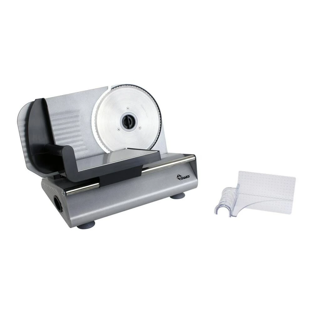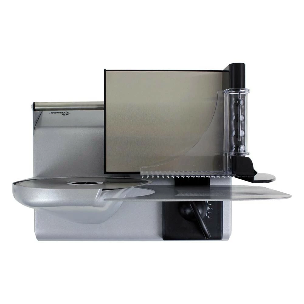 The CHARD 150 Watt Slicer makes a great addition to any kitchen. The 7.5-in stainless steel serrated blade and precision thickness control provide consistent slices every time. The easy glide food carriage allows for large cuts of meat and the ergonomic guide allows food to safely stay in place while slicing. Extra-large suction cup feet provide a stable base on most surfaces. Also features an illuminated power switch which is recessed to help prevent accidental engagement.