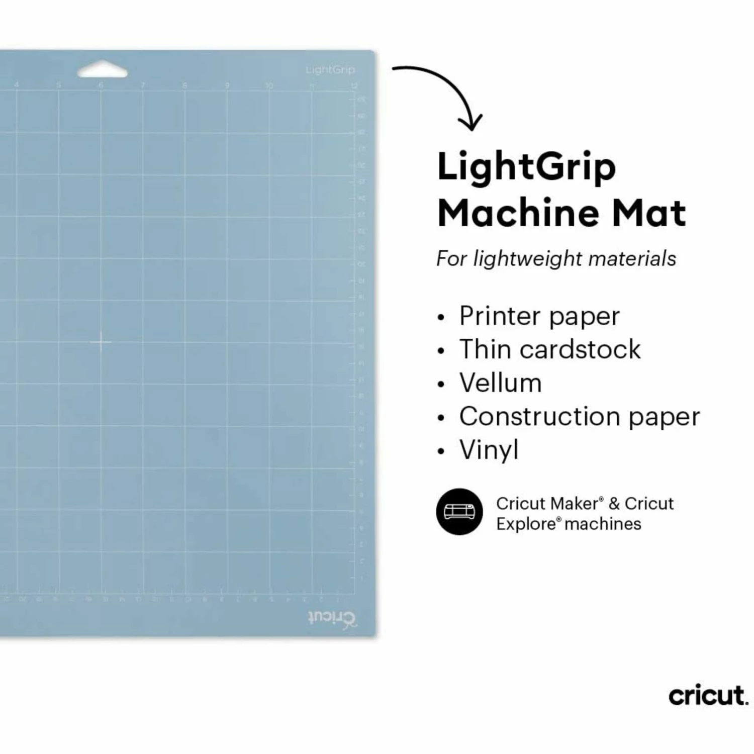 Cut a huge variety of materials while saving money with this variety pack of Cricut® machine mats which cover everything from delicate paper to heavy cardstock. Each reusable mat keeps your material secure for a clean cut and easy removals once the cut is done. Each mat is made for the longest possible life and the best adhesion. With two mats included, you can load one in your Cricut machine for cutting as you prep the next. For use with Cricut Maker® and Cricut Explore® cutting machines. Use the LightGrip Mat for standard paper, light cardstock, and vellum; StandardGrip for heavy cardstock, iron-on, and vinyl; StrongGrip for specialty cardstock, matboard, backed fabric, and more. Tips: Keep the clear film cover on the mat when storing to keep mat free from paper scraps and dust. Use the scraper to scrape away excess pieces and the spatula to carefully remove cut images. To ensure best performance, use the recommended material types on the mats.