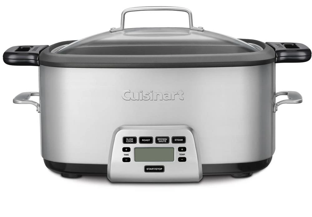 The Cuisinart Cook Central does it all! Brown ingredients right in the unit – no stovetop required – and you can switch to Slow Cook or Roast with the touch of a button for effortless combination cooking. Preset function buttons with time and temperature controls make it simple to Slow Cook, Roast, Brown/Sauté ¯r Steam – or combination cook! This big multicooker makes operation easy, and lets you prepare meals ahead of time so they’re ready when you are!