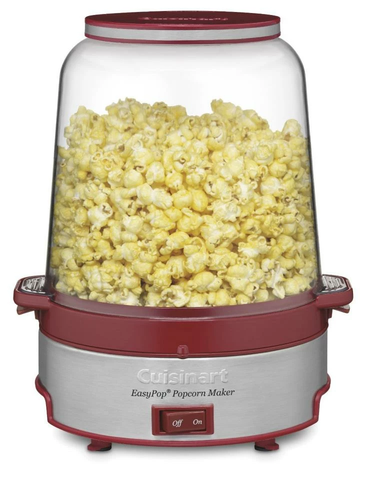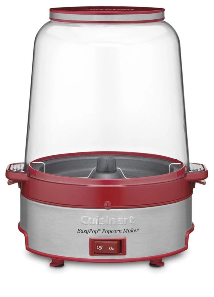 The Cuisinart EasyPop Popcorn Maker makes it easier than ever to pop crunchy homemade popcorn. The Cuisinart EasyPop Popcorn Maker pops up to 16 cups and has special vents in the popping bowl to let moisture escape. Popcorn lovers can select the desired amount of oil and salt to make popcorn just the way they like it. When popping is complete, they can serve right from the popping bowl. The Cuisinart EasyPop Popcorn Maker operates with the simple flip of a switch. Cleanup is easy too: All removable are parts are dishwasher safe. Easy! Fast! Fun!