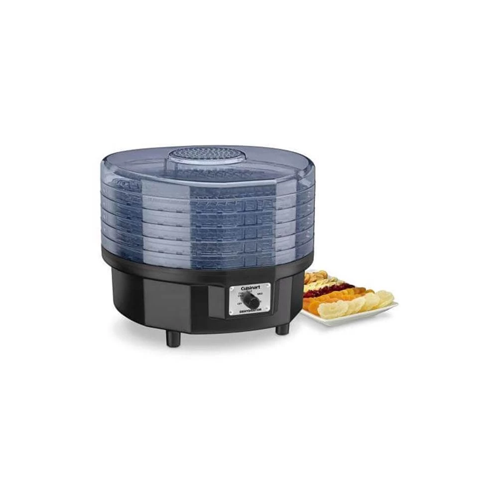 The Cuisinart Food Dehydrator makes it easy to create nutritious, delicious, dried snacks like meat jerky, fruit roll-ups, and veggie chips. It preserves foods naturally, without additives or preservatives. A powerful 620-watt motorized fan has a top vent that allows heat to circulate evenly and efficiently, for faster drying and excellent results. An adjustable thermostat allows for different temperatures, depending on the type of food that’s being dried. With ample space to accommodate large quantities of food, the dehydrator has five interlocking trays that stack on top of one another for easy placement. The options for this appliance are endless, including dried herbs, dried fish, potato crisps, yogurt, dog treats – even dried flowers for potpourri! Helps save money and prevents food waste.