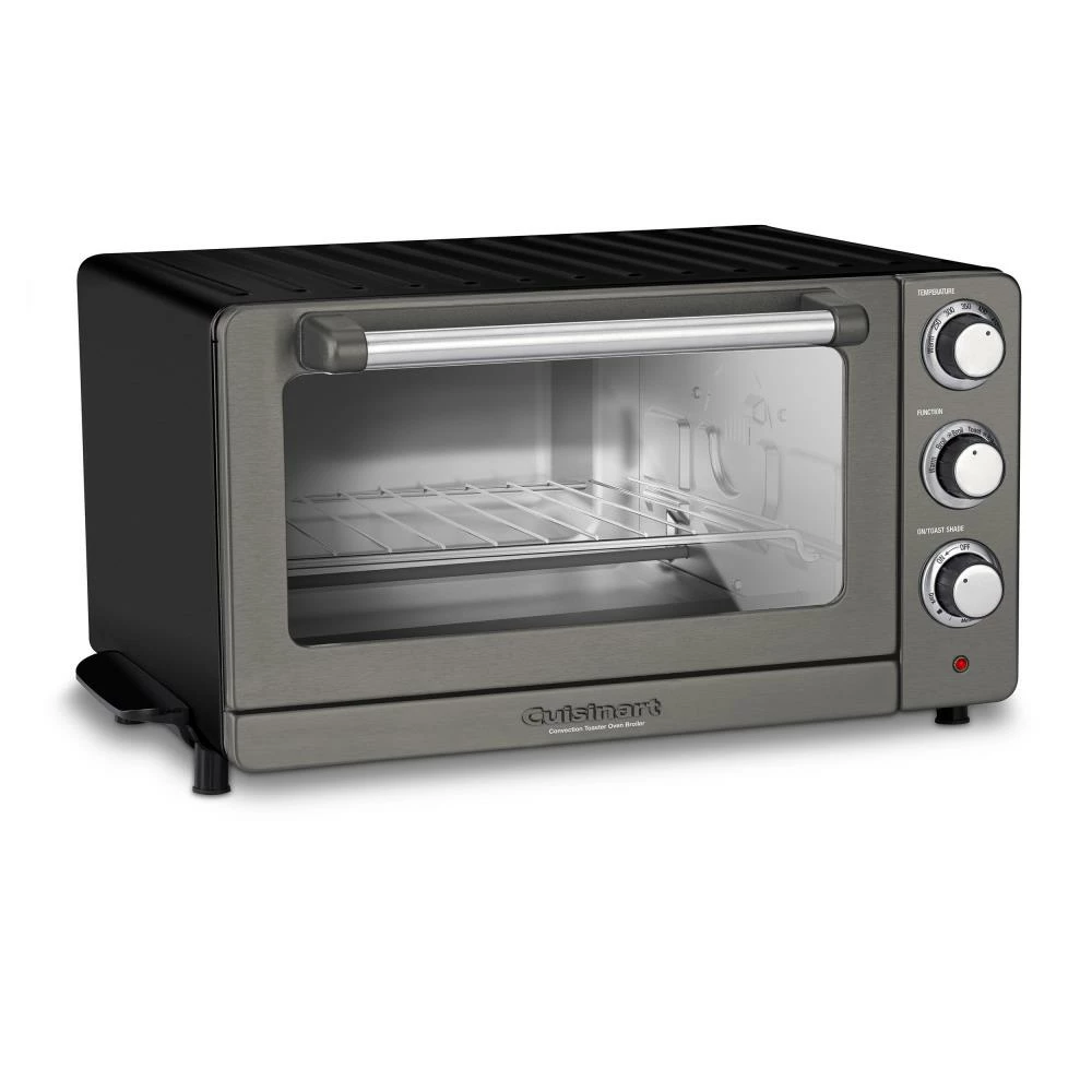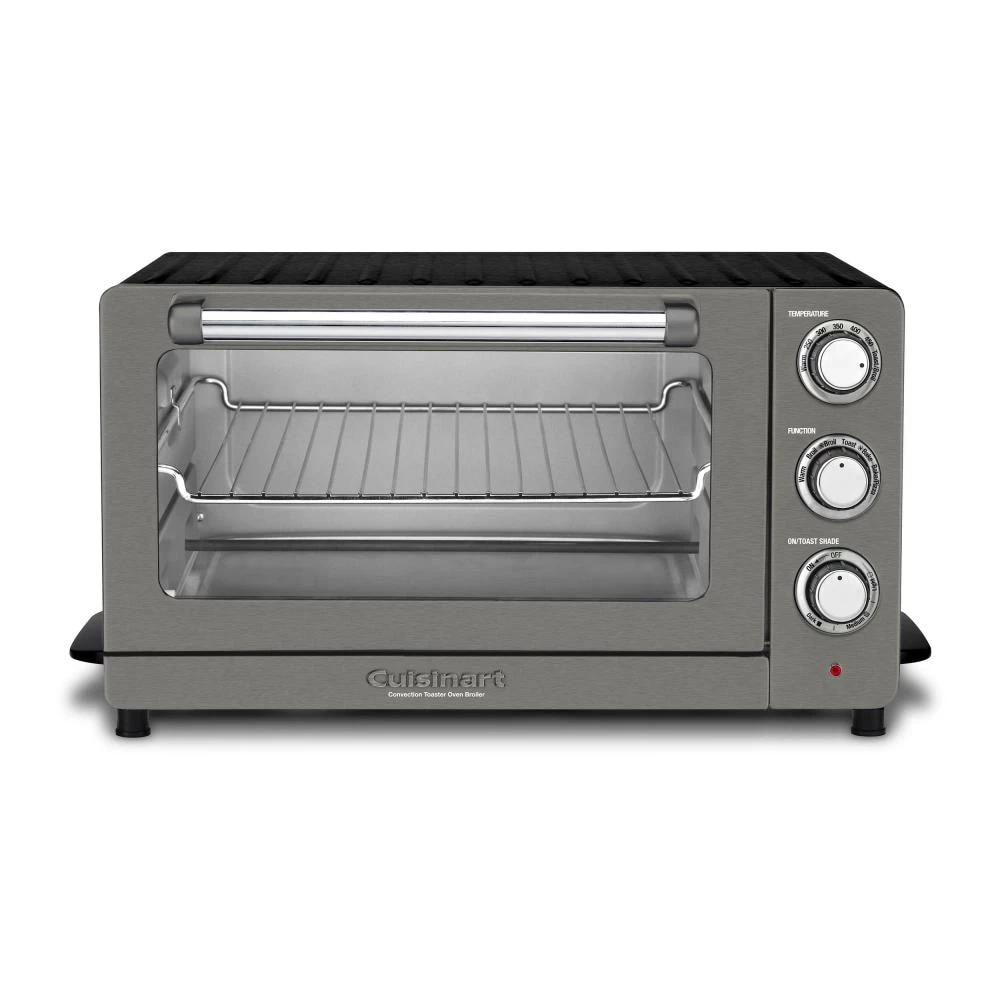 Cuisinart brings a classic approach to modern cooking with the Toaster Oven Broiler with Convection. The industrial stainless steel styling, four cooking options, including convection bake, and convenient keep-warm function make this multi-functional countertop oven a valuable addition to any kitchen. The 500ร? oven can bake, broil, toast, warm, and convection bake to perfection with a tinted glass door allowing you to monitor the cooking progress without opening the door. Clean up is easy thanks to the interior nonstick coating.