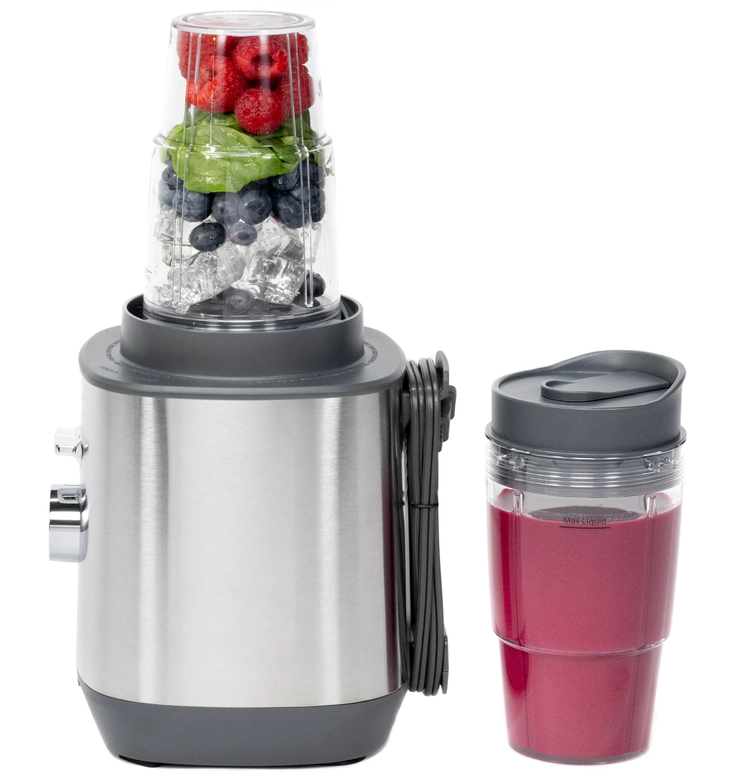 - Two Blender Cups – skip excess clean up with blender cups that hold up to 16 ounces of liquid, so you can go from blending to drinking without missing a beat