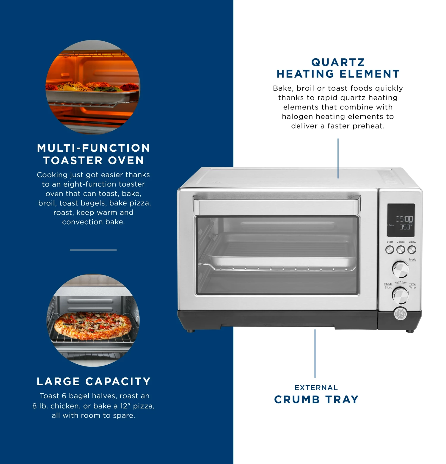- Quartz Heating Element – toast, bake or broil foods quickly thanks to the rapid quartz heating elements that combine with the halogen heating elements to deliver a faster preheat