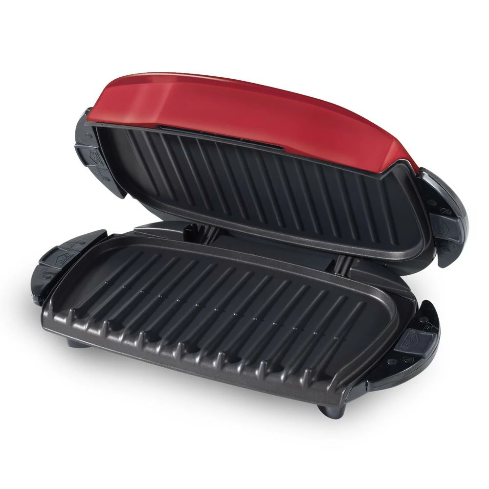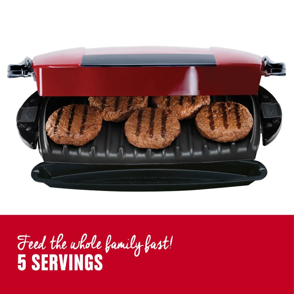 The George Foreman 5-Serving Removable Plate Electric Indoor Grill and Panini Press speeds up preheating, cooking, and cleanup, so you can spend less time on the hustle and bustle and more time around the dinner table with your family. The removable grill plates are nonstick and dishwasher-safe, so you can pop them in with the rest of the dishes and cleanup is done for you! Sound good? From 1/4lb. uncooked 80/20 ground chuck