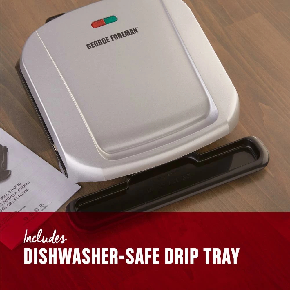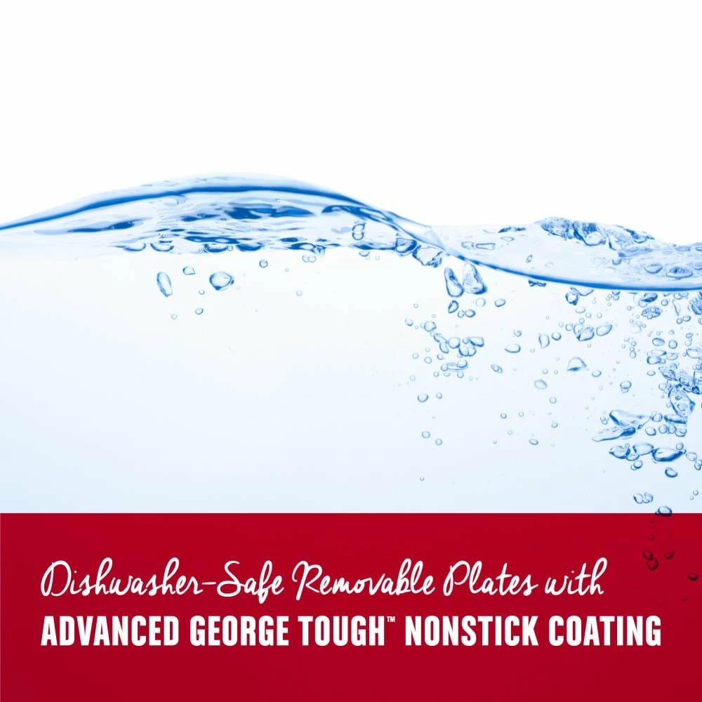 This is how real fast food is made. The George Foreman 4-Serving Removable Plate Grill and Panini heats up 35% faster to deliver hot, tasty food that’s made your way. Cleanup is just as fast thanks to the dishwasher-safe removable plates. They come with the George Tough nonstick coating that holds up through cooking and cleaning, alike. This is the must-have grill for couples or small families who want easy, delicious meals. Compared to current removable plate grill, GRP0004 -from 1/4lb. uncooked 80/20 ground chuck -compared to standard George Tough™ non-stick coating