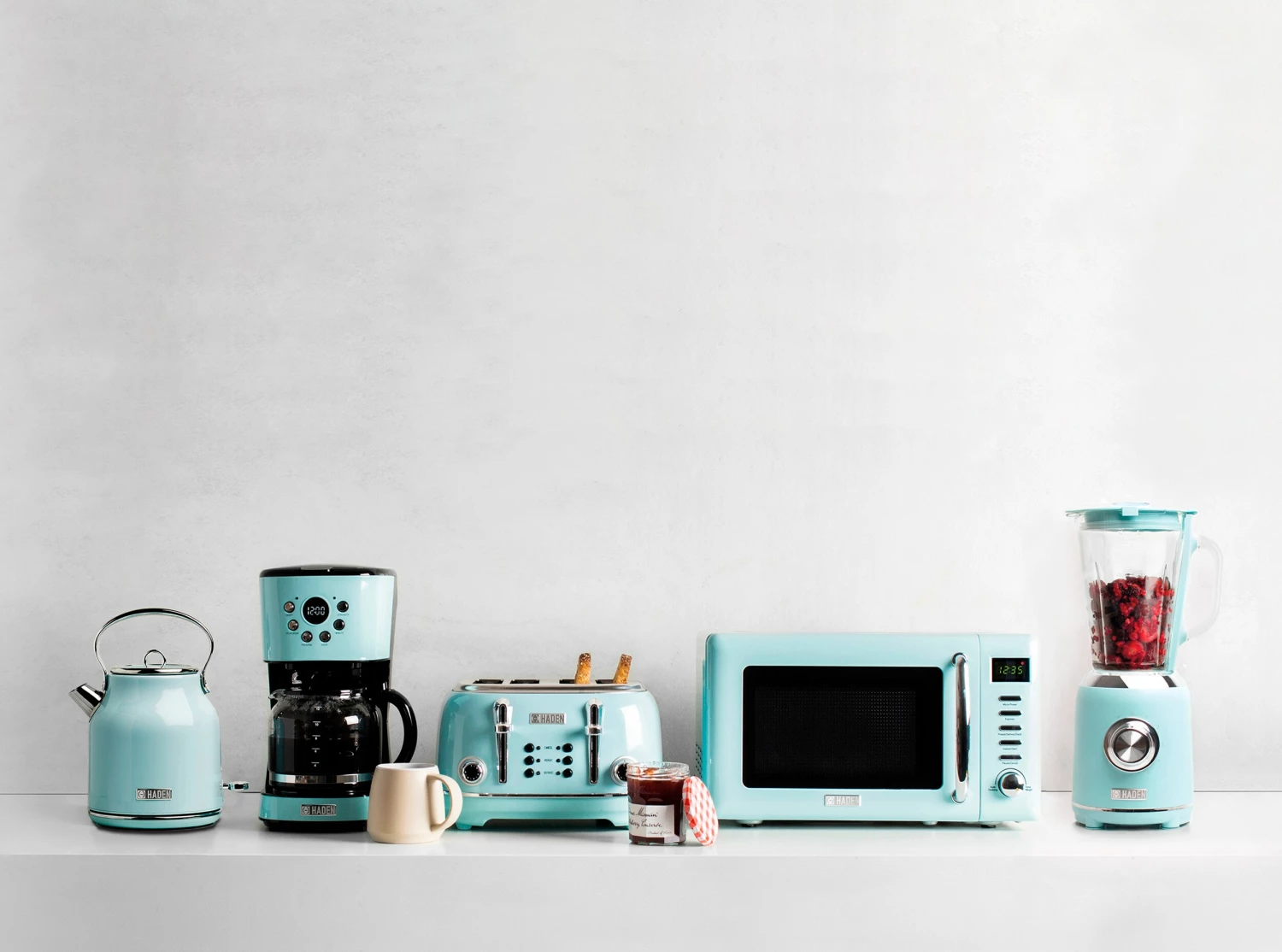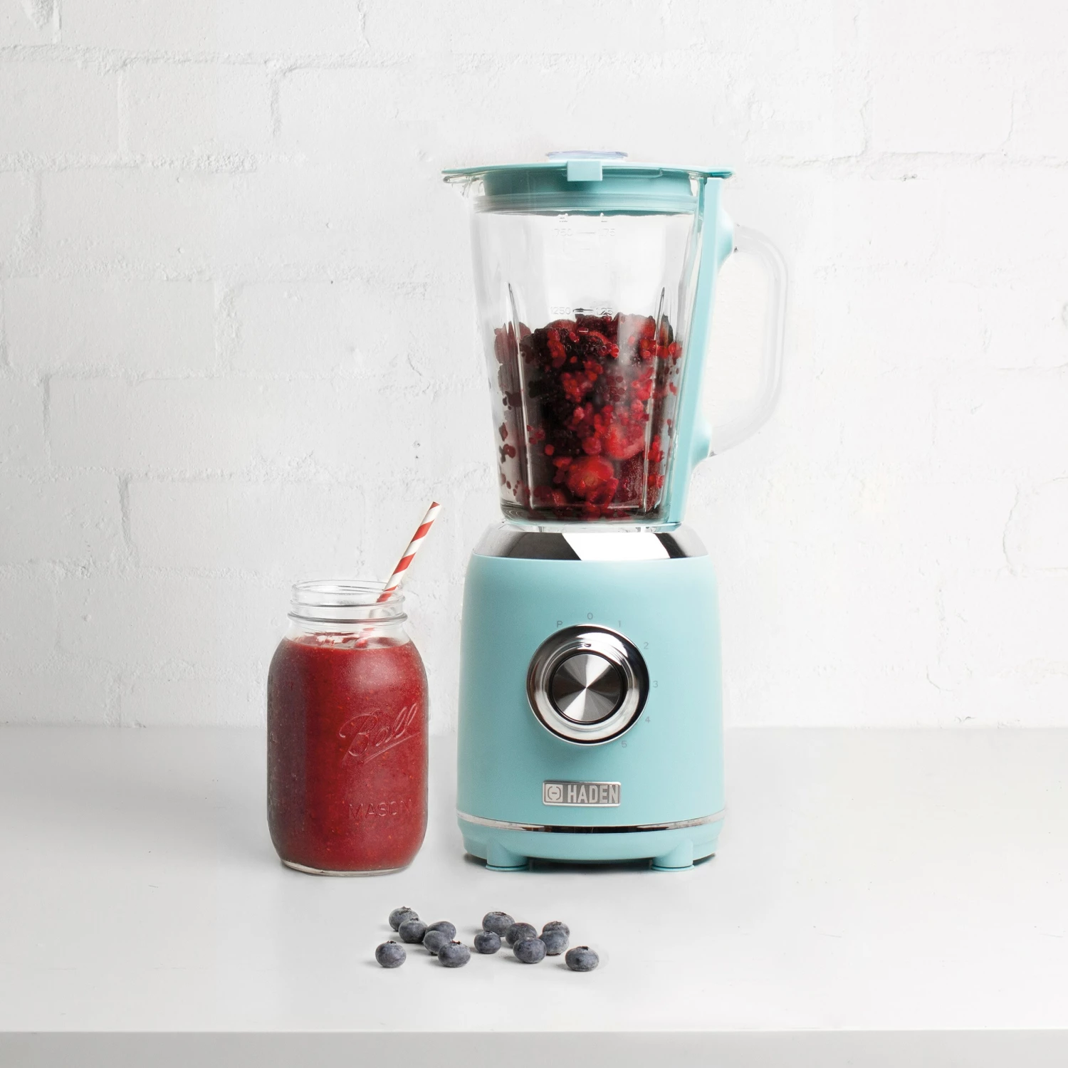 Enjoy fresh smoothies in seconds with Haden Heritage blender. This retro inspired blender features ice crash function, 5 speeds control with pulse, anti- slip feet and tempered glass jug that is dishwasher safe for added convenience. This gadget is not only good looking but perfect for making healthy smoothies, nut milks, sauces, delicious milkshakes, protein shakes, baby food and more. Perfectly matches our Heritage kettle, microwave, coffee maker, blender and toaster Turquoise collection.