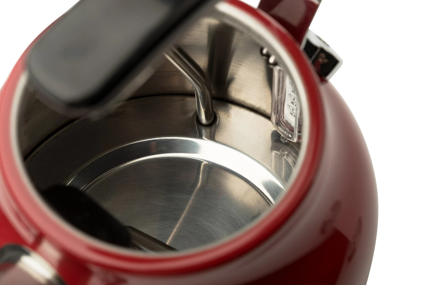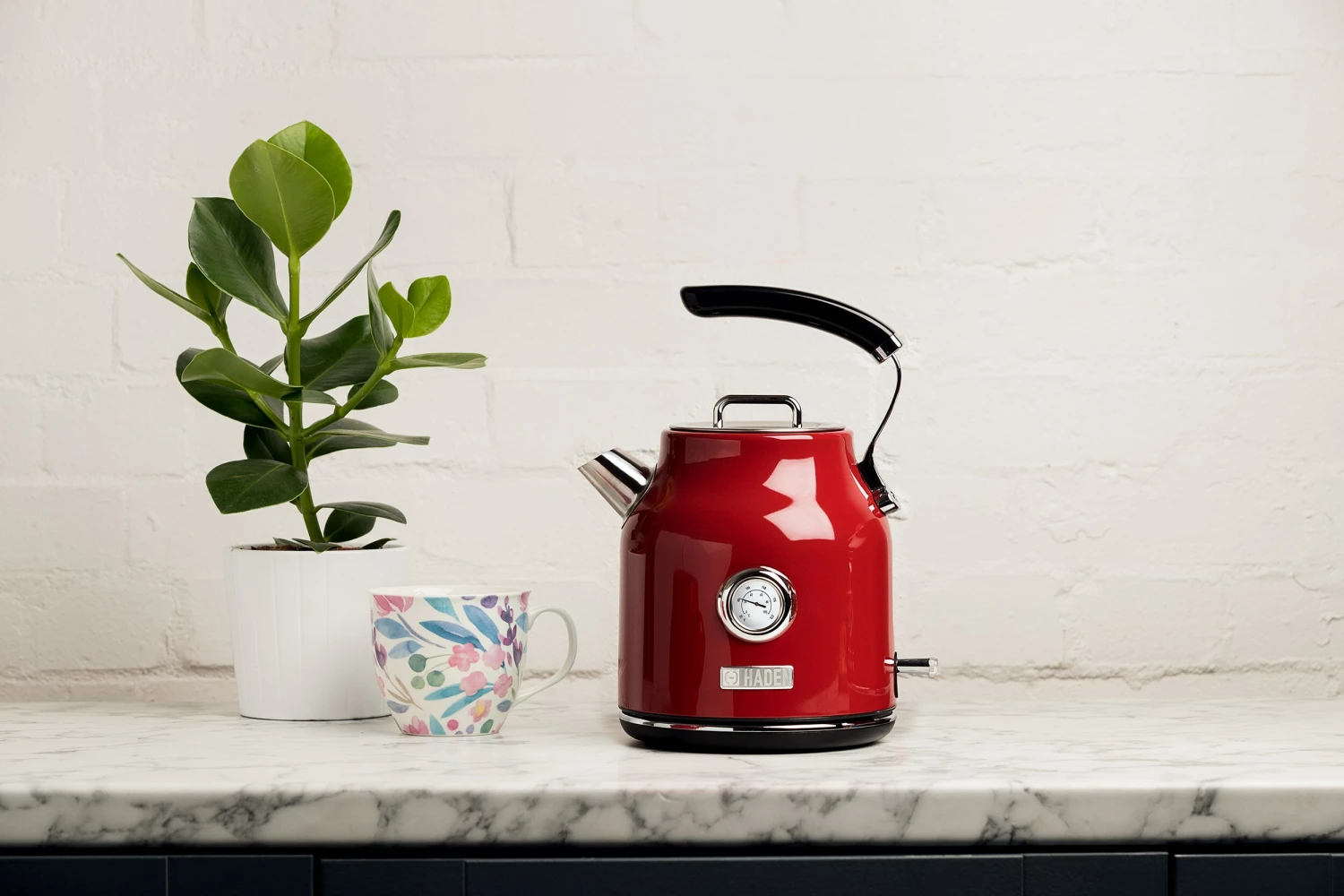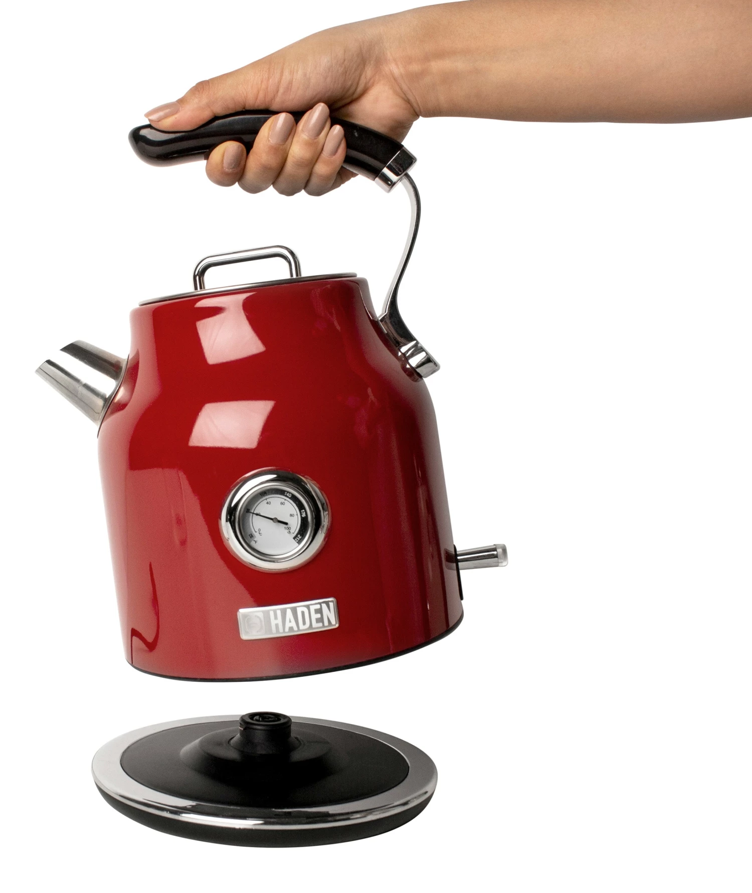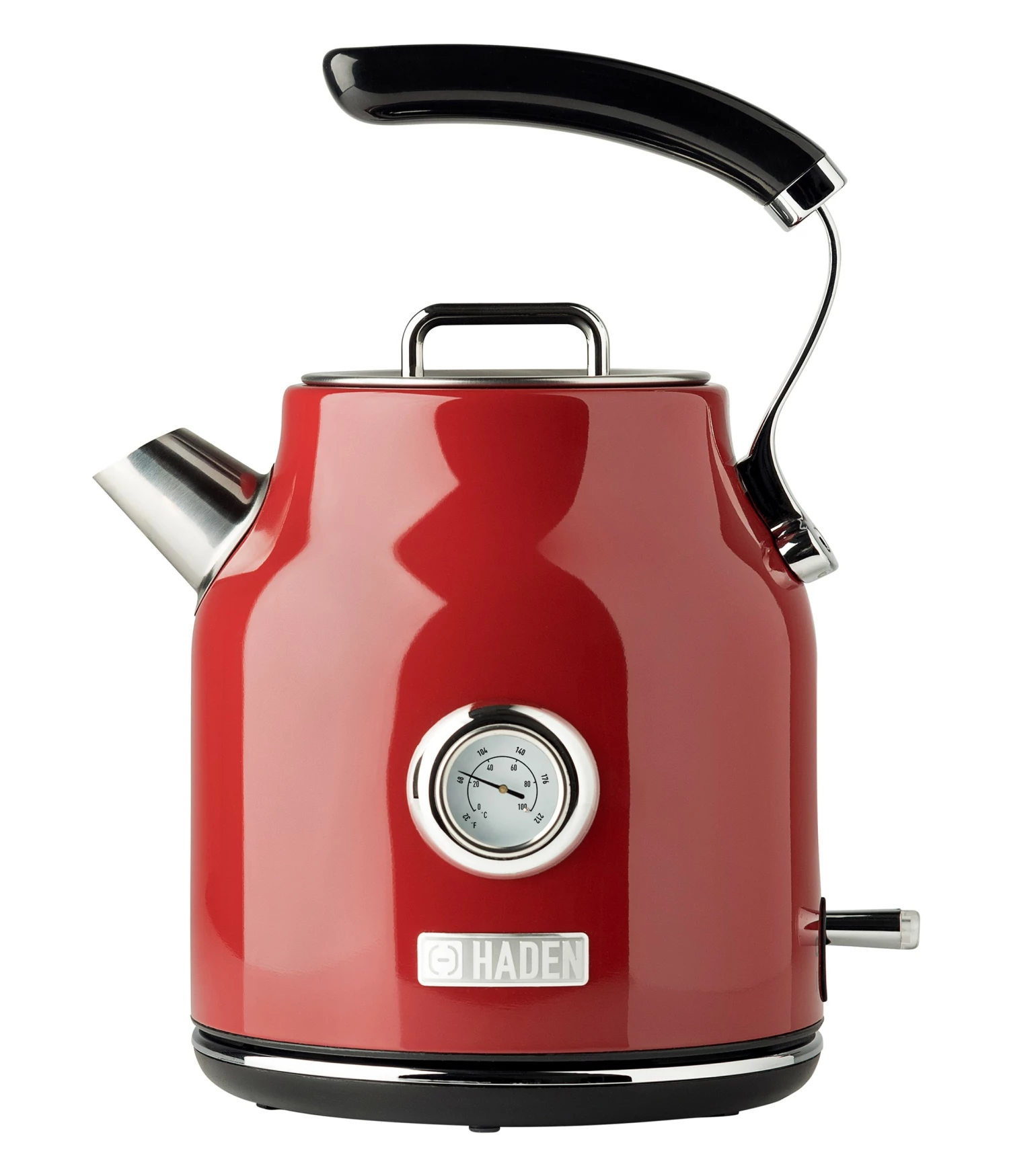 Introducing the Dorset kettle by HADEN. Available in two colors, (Red and Putty) the collection has a stylish shape and design. This kettle features a 1.7-Liter (7 cup) capacity, temperature scale, convenient water gauge window, light indicator during boiling and a spare filter. Add a pop of color to any kitchen and brighten up your morning routine with this bold, red kettle. Perfect for a great tasting cup of tea or for heating water for pour over coffee or instant coffee. Matching toaster also available.