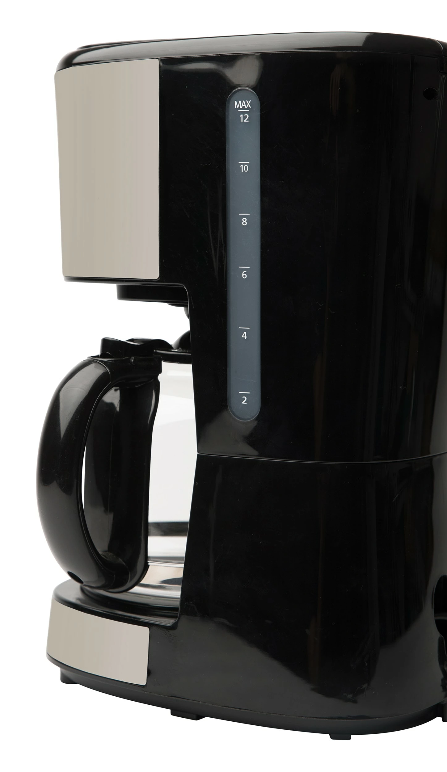- Features: 12 Cup Capacity, Washable Filter, Keep-Warm Function, Glass Carafe (8 in. Wide x 6 in. Deep x 6.5 in. High), Sleek and Modern Design