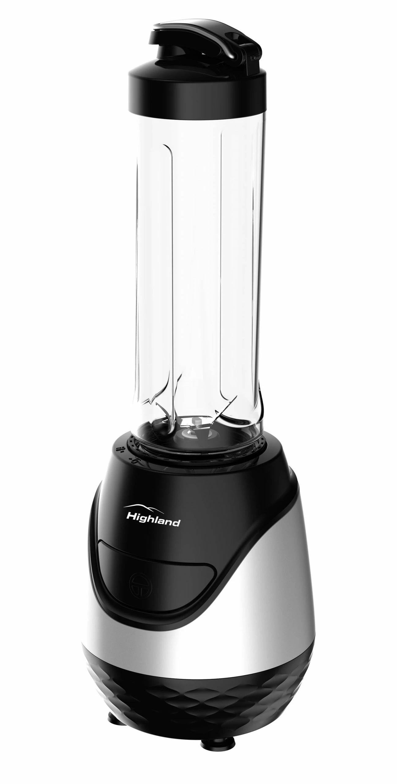 The Highland 20.3 oz Personal Blender is perfect for making drinks, juice, yogurt, smoothies, protein shakes, and any food prep. The 2-layer stainless steel 4 leaf blade makes it efficient and easy to crush ingredients and extract nutrition from fruits and vegetables. Simple to operate with one button and with anti-slip rubber feet for added stability while blending, this Highland blender is designed to fit a fast-paced lifestyle while helping you create delicious beverages. This blender includes two 20-oz BPA-free travel cups with two spill-proof lids offering you Blend-and-Go convenience. Bring your shake with you everywhere: in the car, to the gym, or even to your office. Once you finish using the blender, it is easy to clean with dishwasher safe attachments. This blender’s elegant design with black and chrome coating finish will match any space!