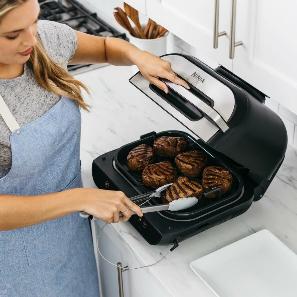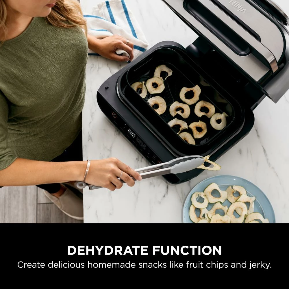 - 6-in-1 indoor grill—Grill your favorite foods to char-grilled perfection, or go beyond grilling with 5 additional cooking functions: Air Crisp, Bake, Roast, Broil, and Dehydrate