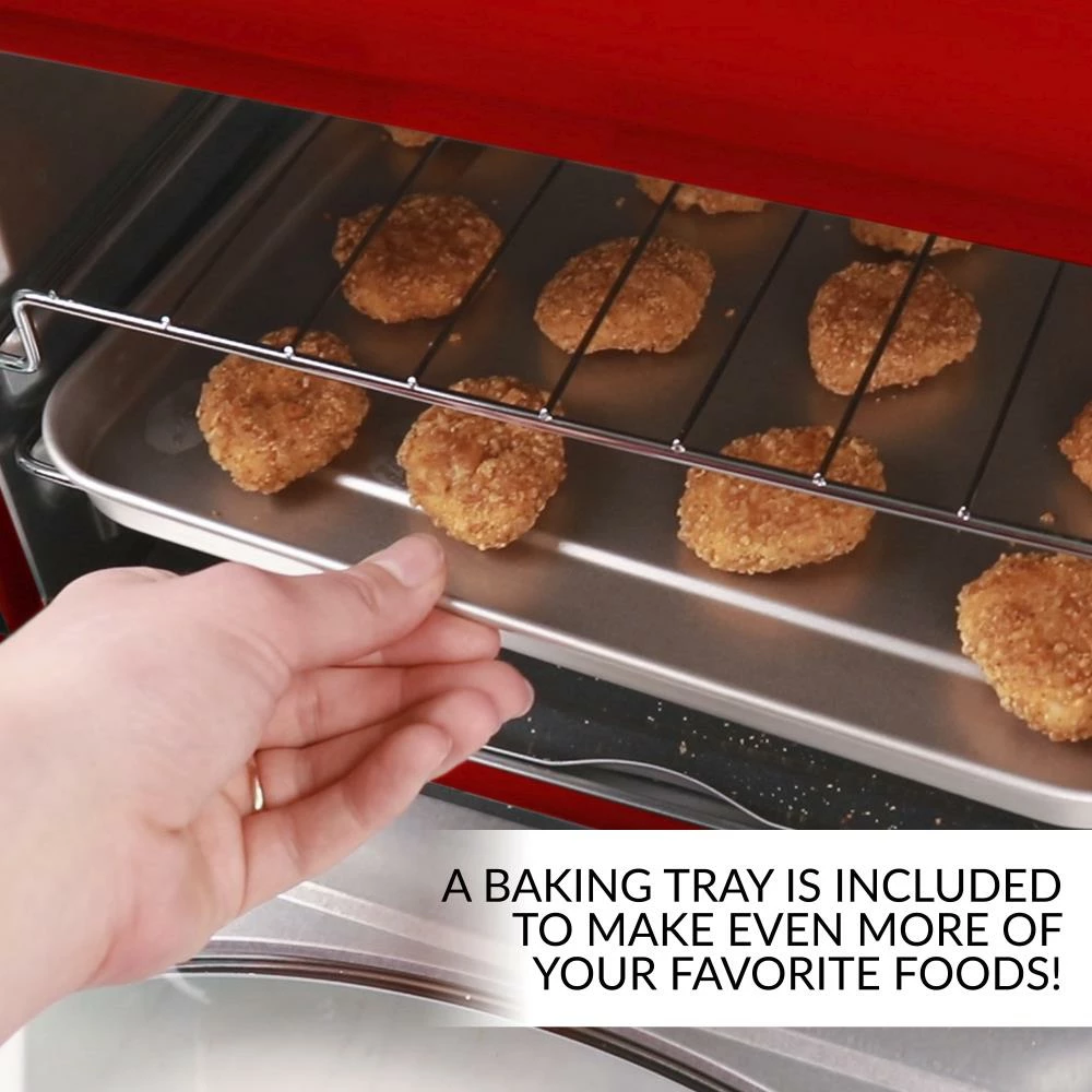 - EASY CLEAN UP: As if cooking isn’t easy enough, the baking pan, wire racks and crumb tray are removable, making cleanup a breeze