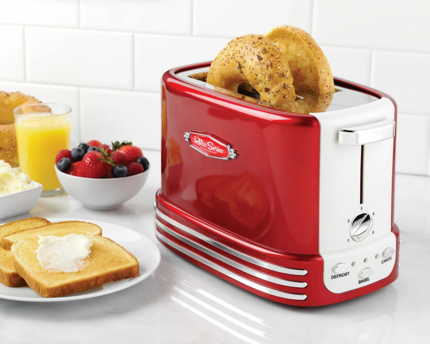 - EXTRA-WIDE TOASTER: The 2 large slots are perfect for toasting bagel halves and thick slices of bread, English muffins, and more
