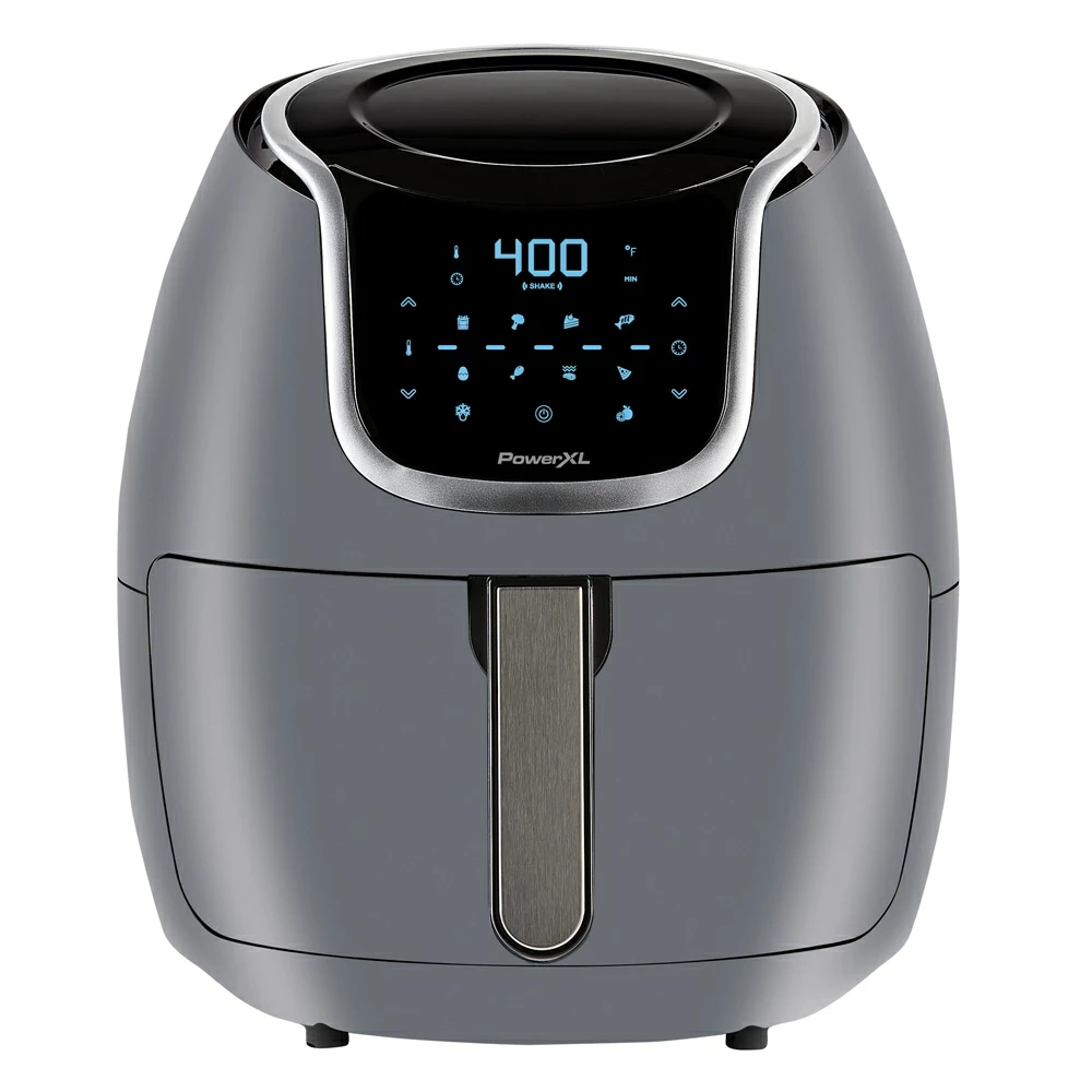 Cook with little to no oil for healthier low fat cooking. Easy-clean nonstick coating. Vortex rapid air technology circulates hot air to fry food – no oil needed! Frying your favorite foods has never been easier with the Power XL Vortex Air Fryer. Simply add your food to the Easy load basket, slide it into the unit, and with the touch of a finger select your cooking setting from one of the 8 preset programs. The digital touch panel display eliminates the guesswork and ensures whatever your cooking comes out perfectly delicious time after time. Enjoy fried foods without the guilt! – The amazing way to fry foods with little to no oil using super-heated air, less fat and up to 70% fewer calories. Super-heated air heats up to 400° – Cool to the touch – Easy-grip handle -ez to follow step-by-step recipe book.